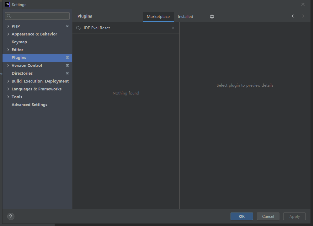 然后找到 Plugins 項點擊 Marketplace 項直接搜索 IDE Eval Reset 無限 jetbrains 試用擴(kuò)展