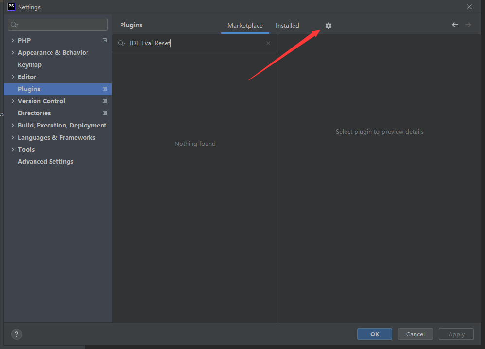 我們發(fā)現(xiàn)并沒有搜索到,這時因為 IDE Eval Reset 無限 jetbrains 試用擴(kuò)展并不是官方收錄的插件,這個時候我們只需要在右邊齒輪圖標(biāo)位置配置下第三方插件源即可