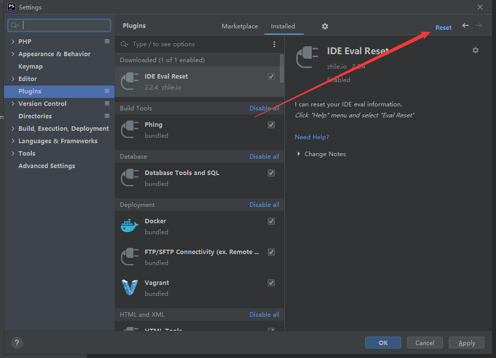 點擊 Install 安裝,完成之后返回 Installed 點擊 Reset 重啟 IDE 即可