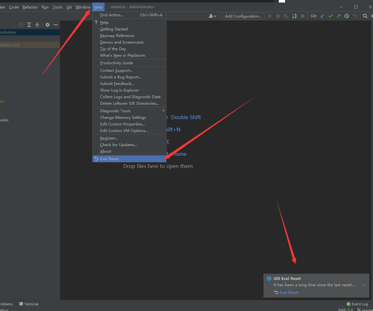 如果IDE沒有打開項目,在Welcome界面點擊菜單:Get Help -> Eval Reset