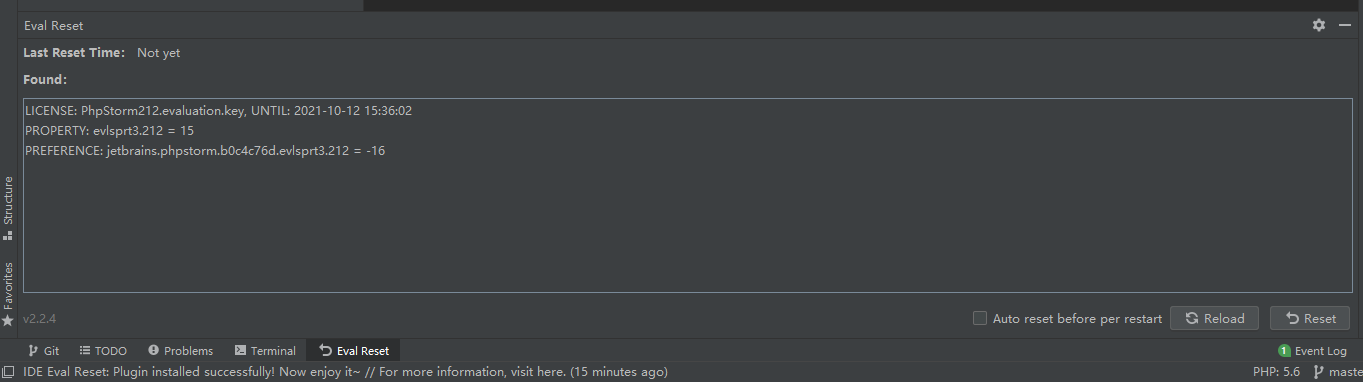 勾選項: Auto reset before per restart 如果勾選了,則自勾選后每次重啟/退出IDE時會自動重置試用信息,你無需做額外的事情, 此為自動重置方式